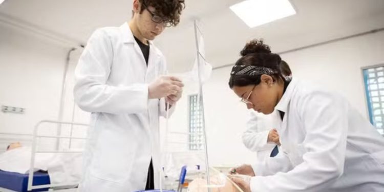 A educação profissional e tecnológica registrou um incremento de aproximadamente 208 mil novas matrículas entre 2024 e 2025, subindo de 1.082.146 para 1.290.081 alunos. O ensino técnico é um dos pilares centrais dos itinerários formativos do Novo Ensino Médio, desenhado para integrar o currículo básico a formações voltadas ao mercado de trabalho.