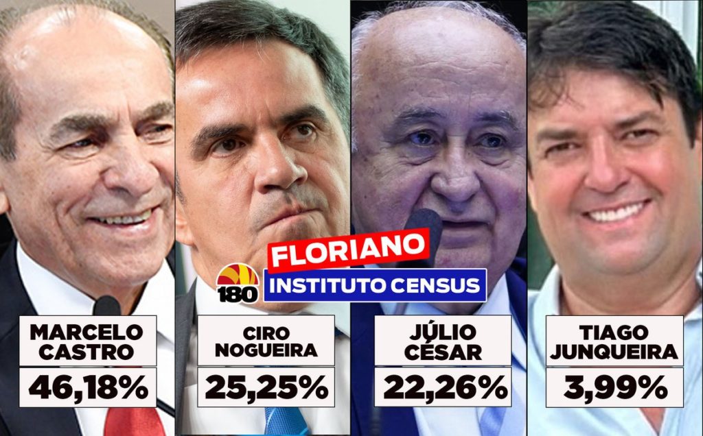 Castro, que conta com o apoio do presidente Luiz Inácio Lula da Silva e do governador Rafael Fonteles, é seguido pelo senador Ciro Nogueira, apoiado pelo ex-presidente Jair Bolsonaro, que registra 25,25%. O deputado federal Júlio César, também aliado à base governista, ocupa a terceira posição com 22,26%.